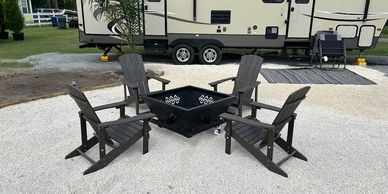 Every lot features its own firepit and seating area, perfect for cozy evenings under the stars, roasting marshmallows, or sharing stories by the fire.